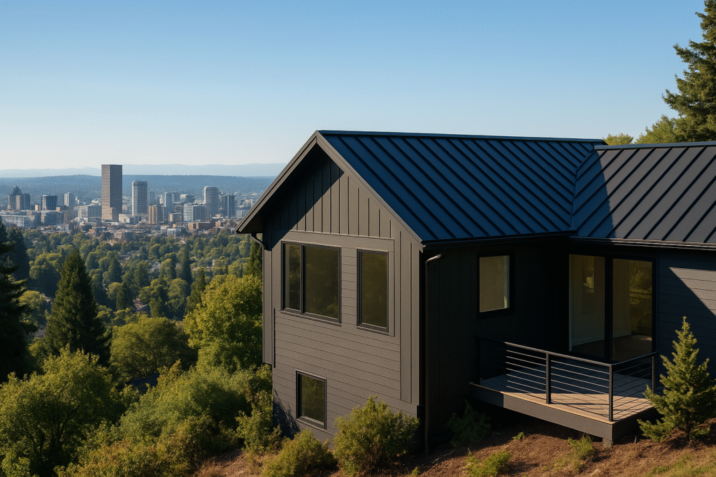 When you put a new roof on your home, you don’t want to think about replacing it again in 15 years. We’ve seen too many neighbors around Oregon, go through that cycle — first with asphalt, then again a decade or two later when the rain, wind, and moss take their toll. A properly installed metal roof ends that pattern. Ours come with a 40-year material warranty and a workmanship guarantee, so you get the same crews checking, prepping, and installing from the first ladder up to the last fastener in place. That consistency matters — especially here, where winter storms push gusts off the Columbia River and heavy rains soak a roofline for weeks at a time. Homeowners choose metal not just for the longevity, but because it keeps maintenance low, reflects heat in the summer, and stays sharp-looking year after year. If you’re ready for a roof that’s likely the last one you’ll ever need, we can start with a free inspection and a written estimate that lays out the cost, scope, and timeline before any work begins.